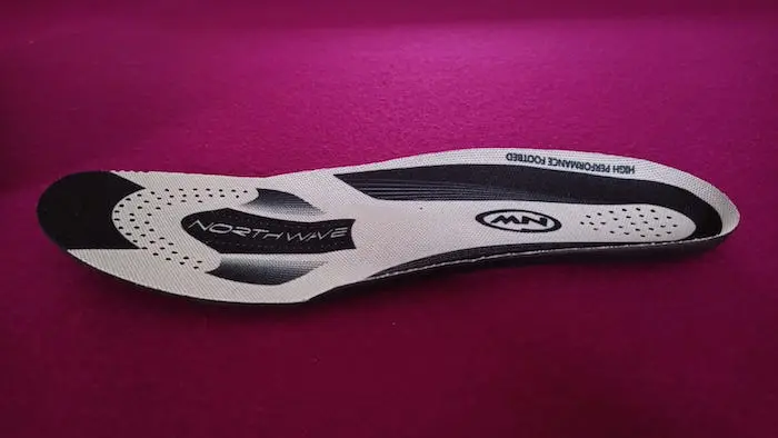 La semelle intérieure est assez basique, et bénéficie juste d’un léger renfort central sous la voûte plantaire en plein milieu du pied. Le maintien n’est donc pas total lorsqu’on recherche un calage précis. Toutefois, le pied a un peu de liberté et peut se positionner ainsi à sa guise dans la chaussure tout en étant correctement maintenu.