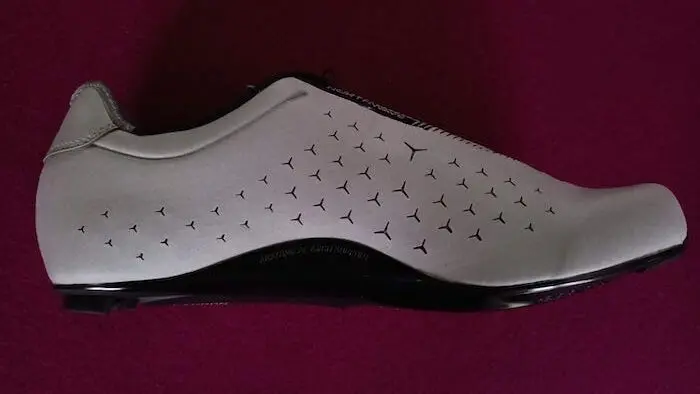Les chaussures Northwave Revolution 2 sont disponibles en noir et dégradé prune/noir. Mais c’est cette version gris/argent mat qui est selon nous du meilleur effet, d’autant plus que cette finition offre un côté réfléchissant rassurant lors des départs matinaux ou lors des sorties en fin de journée. L’ensemble de l’empeigne en polyuréthane est ainsi recouverte d’une couleur qui apparait comme phosphorescente sous la lumière directe.