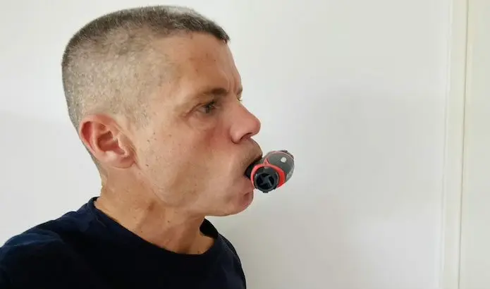 La première étape consiste à mesurer les capacités pulmonaire, inspiratoire et expiratoire, de manière à pouvoir calibrer le niveau d’exigence des exercices. Réaliser un bon test pour les trois valeurs en même temps n’est pas évident, surtout qu’il faut s’habituer à la manière de serrer l’embout dans la bouche, au risque de voir de l’air s’échapper du joint.