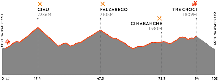 ÉTAPE 1 : Cortina D’Ampezzo – Cortina D’Ampezzo (103 km | 2900 m de dénivelé positif)