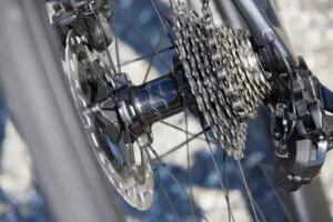 Seule ombre au tableau : le bouton de réglage se situe désormais sur le dérailleur arrière, et non plus au niveau du poste de pilotage, du tube diagonal du cadre, ou encore de la tige de selle. Des endroits accessibles en pédalant, pour changer de mode de changements de vitesse, ou pour effectuer un micro réglage de l’indexation tout en roulant. Avec ce nouveau groupe 12 vitesses, il faut désormais s’arrêter et descendre du vélo pour actionner ce bouton.