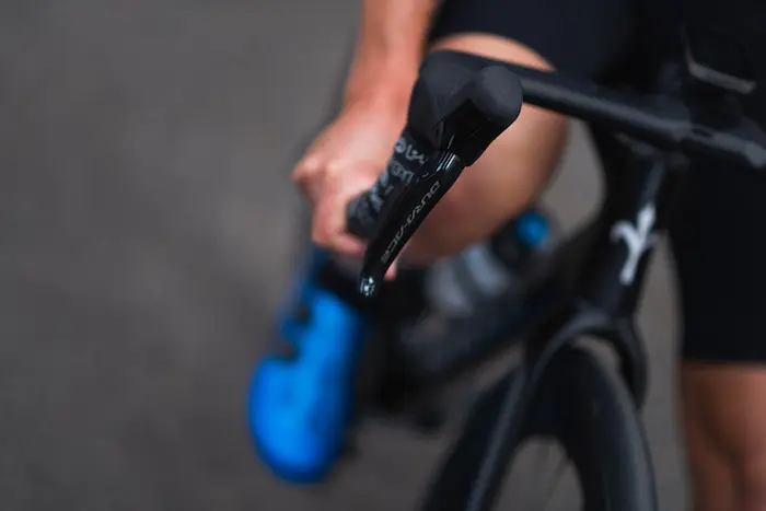 La principale relation que l’on peut entretenir avec un groupe de transmission s’effectue par l’intermédiaire des poignées, que ce soit avec les mains sur les cocottes ou avec les mains en bas du cintre. La finition apparait ici d’un excellent niveau, avec un caoutchouc adhérent et en même temps assez doux au toucher. Au niveau de l’articulation des leviers, il n’y a pas de partie contondante susceptible de blesser l’index ou le majeur en agrippant les poignées comme c’est le cas sur les leviers mécaniques Shimano ou encore sur certaines poignées Sram.
