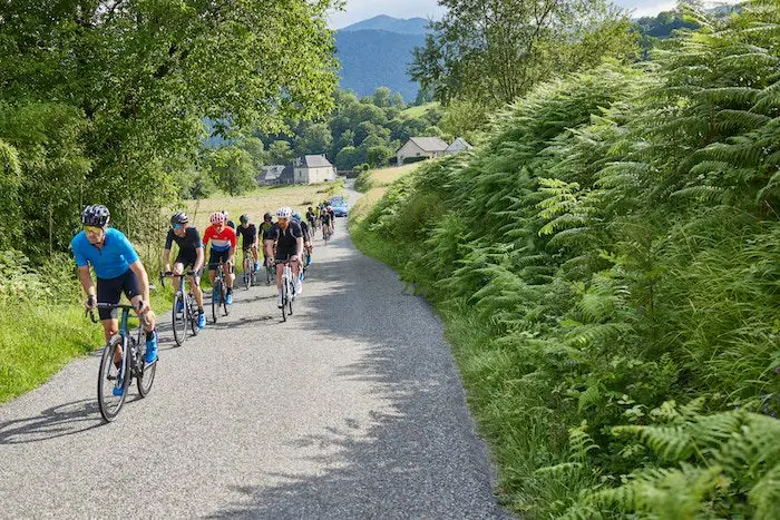 Enfin, un dernier mot sur les nouvelles roues Dura-Ace C50, montées sur le vélo d’essai avec des pneus tubeless en 28 mm. Sous les rafales de vent dans les vallées, en prenant des relais appuyés avec nos compagnons de route, ou encore dans les pentes à 10 % de la montée de Luz Ardiden, elles apparaissent comme particulièrement polyvalentes.
