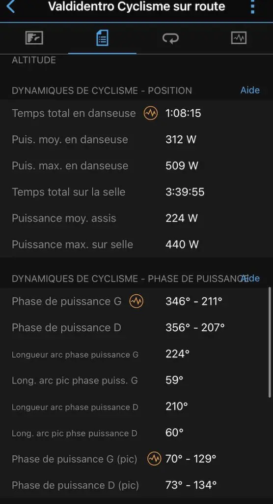 Les Assioma Duo version Shimano offrent des données très précises en termes de « dynamiques de cyclisme » : elles renseignent sur les phases (et pics) de poussée, le temps en danseuse et la puissance, le temps assis et la puissance, l’équilibre gauche/droite… Mais à la condition d’avoir le compteur supportant ces données, qui selon moi ne sont pas utiles à la progression, mais qui peuvent mettre en avant un début de blessure ou un déséquilibre. Pour le reste, la précision des données de puissance est toujours de très haut niveau, et s’impose aujourd’hui comme une référence sur ce marché super concurrentiel.