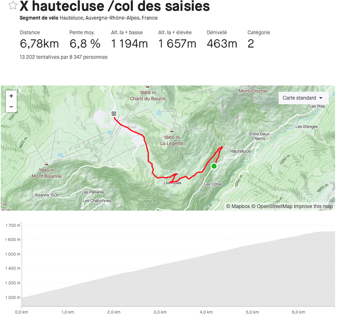 Le grand parcours est vraiment musclé avec pour principales difficultés : le col de L’Arpettaz, le col du Pré et les Saisies, mais d’autres petites embuches viendront corser les choses… Les principales difficultés :