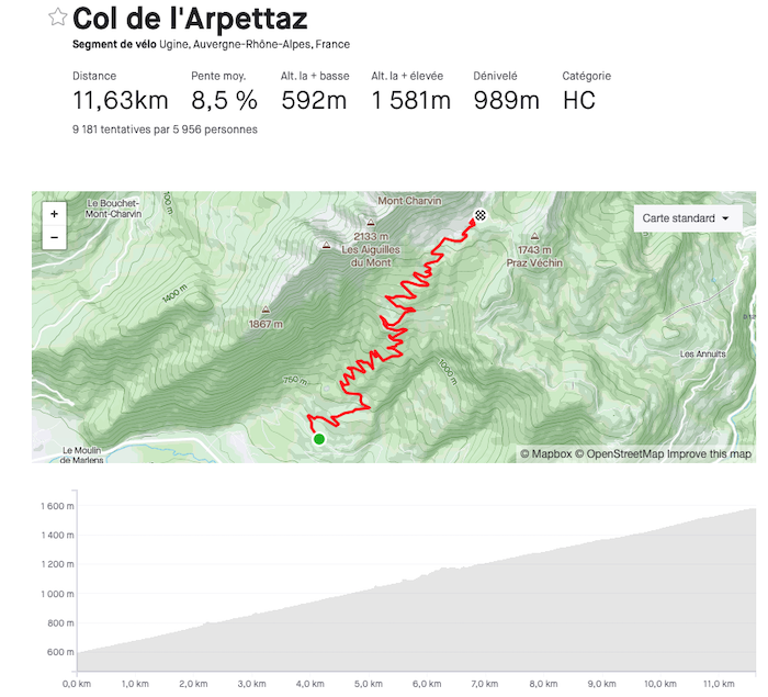 – Le Col de l’Arpettaz : 11,7 km à 8,5 %