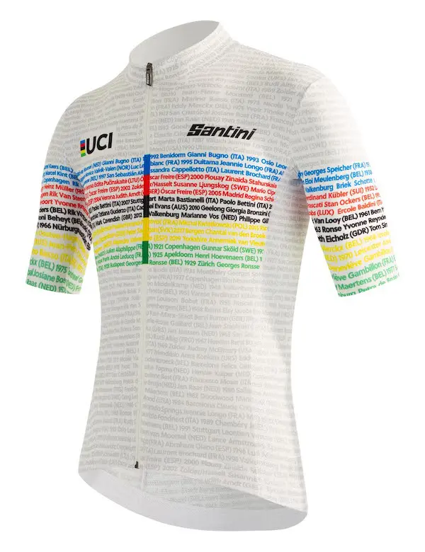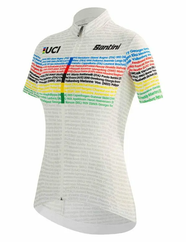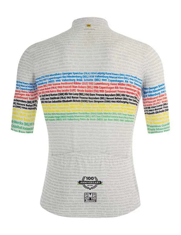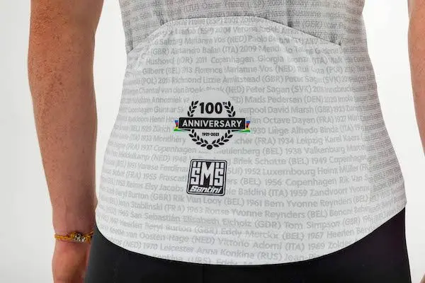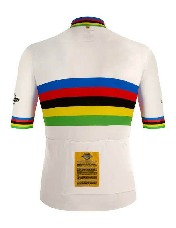 Les Championnats du Monde sur route de l’UCI célèbrent leurs 100 ans en 2021. Pour l’occasion, Santini lance une collection spéciale qui est composée d’un maillot homme et d’un maillot femme avec les noms des champions et championnes du monde et un maillot en édition limitée avec des détails dorés.
