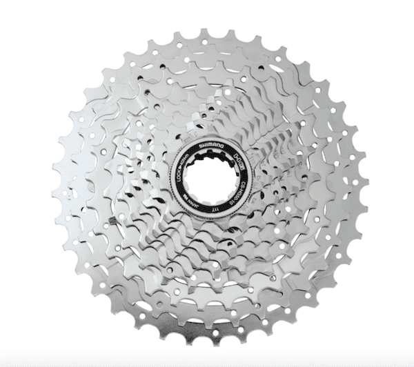 Cassette : ensemble des pignons à l’arrière (10, 11, 12, voire 13 selon le groupe). Attention à la compatibilité sur le corps de cassette de la roue : on trouve l’empreinte HG pour Shimano/Sram, et l’empreinte ED propre à Campagnolo, et des empreintes spéciales pour les cassettes avec un départ à 10 dents.