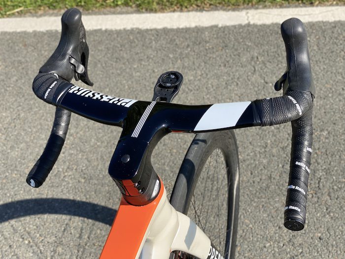 La prise en main des poignée est particulière, mais pas franchement désagréable. Elle convient mieux en tout cas aux grandes mains qu’aux plus petites en termes d’ergonomie. La finition est d’un excellent niveau, et on ne voit aucune partie contondante susceptible de blesser les doigts, comme c’est le cas chez Sram par exemple. S’il semble un peu compliqué d’empoigner pleinement les cocottes en raison de leur forme particulière, la partie supérieure surélevée offre un appui supplémentaire en position de recherche de vitesse, avec les coudes posés dans l’angle du cintre par exemple. Notons aussi que cette excroissance offre un avantage dans certaines situations, pour rattraper le guidon après un faux mouvement par exemple.