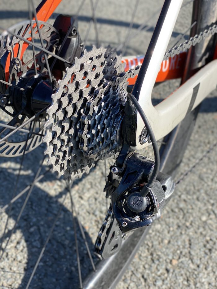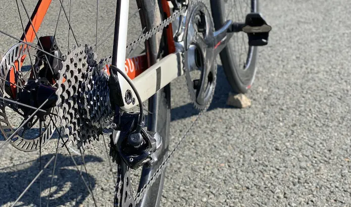 On peut s’amuser à rouler avec le grand plateau et le grand pignon de 32 dents comme Tadej Pogacar dans le col de la Colombière sur le dernier Tour de France, sans sentir de résistance.