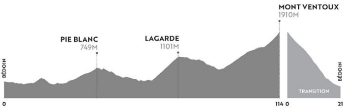 ÉTAPE 1 : Bédoin – Mont Ventoux : 114 km, 3000 mètres de dénivelé positif