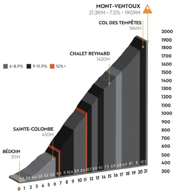 ÉTAPE 3 : Bédoin – Mont Ventoux (contre-la-montre) : 21,5 km, 1500 m d+