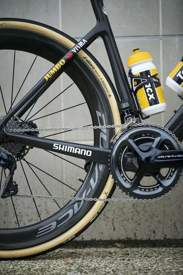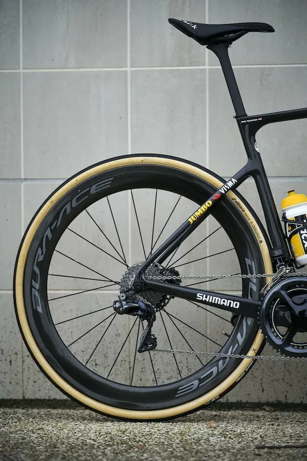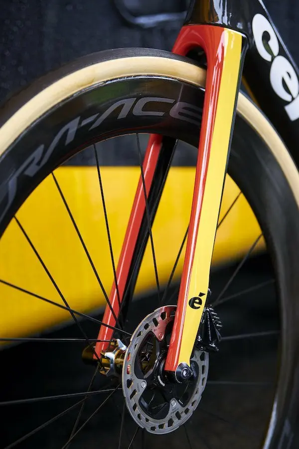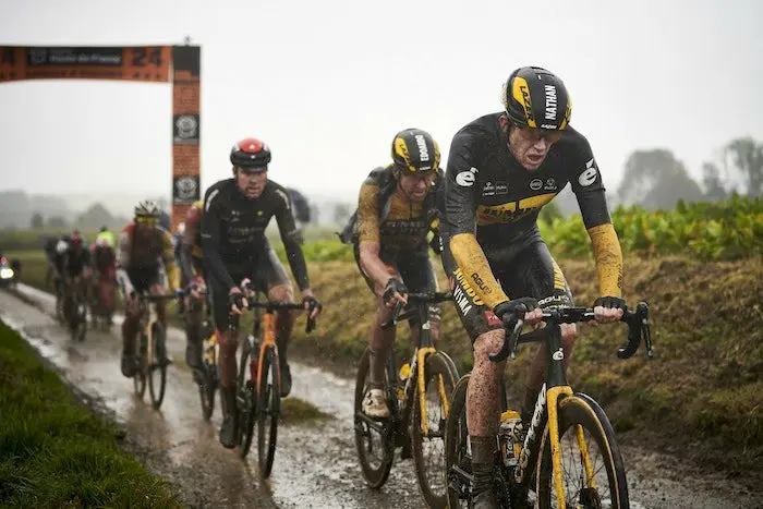L’intégralité de l’équipe Jumbo-Visma (hommes et femmes) a roulé ce week-end sur les pavés de Paris-Roubaix avec le Caledonia-5, dans un coloris spécial pour l’occasion aux couleurs du Team (coloris non disponible à la vente).