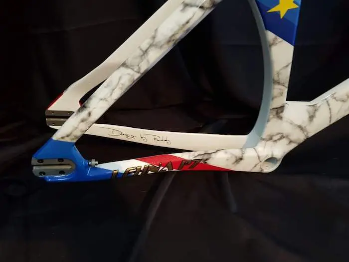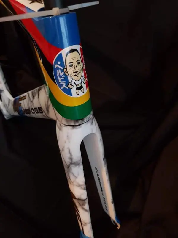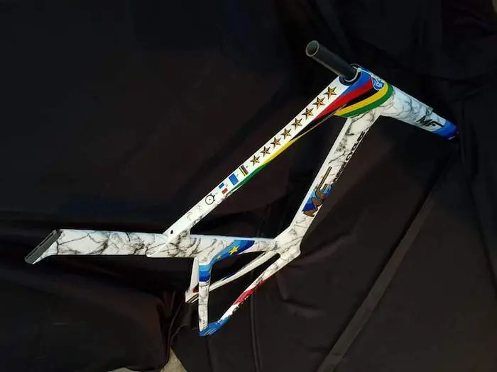 La décoration personnalisée a été confiée à Rudy Design, un peintre aérographe du Pas-de-Calais, et qui permet à MF Carbon Cycles de proposer tous les coloris possibles. La peinture du vélo de François Pervis a demandé de longues heures de travail. Elle rappelle le palmarès du champion français.