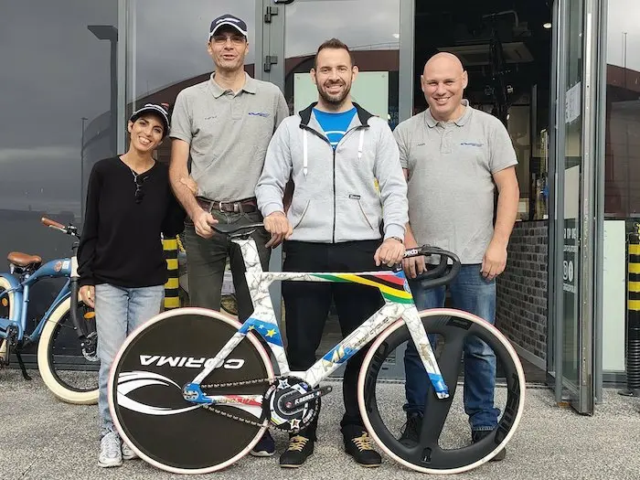 Huit fois champion du monde sur piste, quatre fois champion d’Europe et deux fois médaillé de bronze aux Jeux olympiques, François Pervis met un terme à sa carrière, à 37 ans. Pour sa célébrer son magnifique parcours, MF Carbon Cycles lui a préparé un vélo spécial, que le Mayennais utilisera sur les séances de baptêmes sur piste qu’il organisera sur le vélodrome de Saint-Quentin-en-Yvelines.