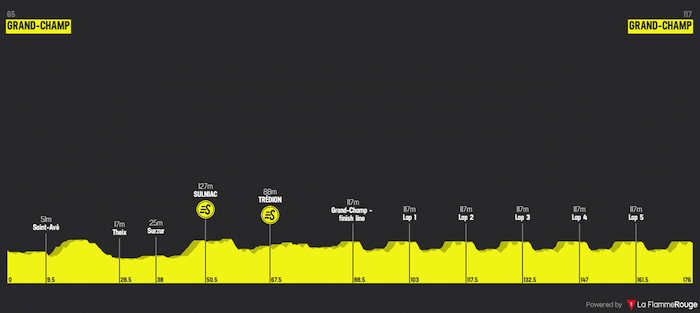 Les coureurs devront parcourir une première partie en ligne de 90 km, puis un circuit final de 14,6 km, pour une distance totale de 176,9 km.