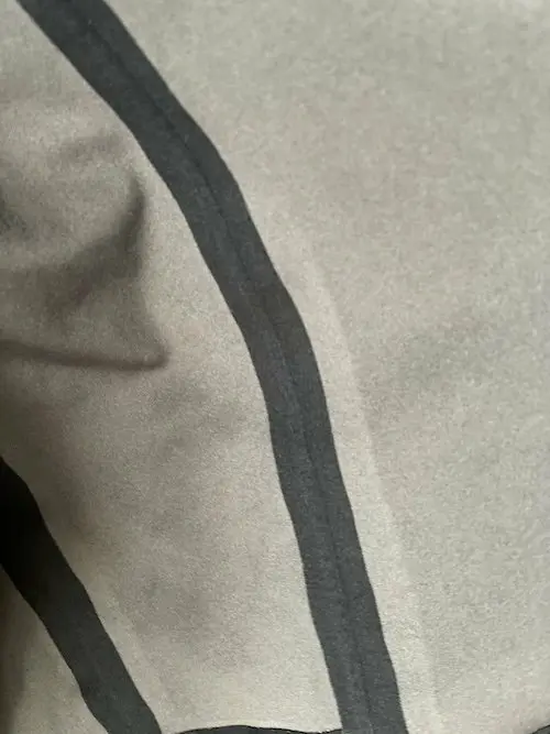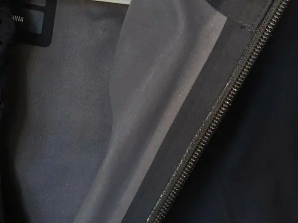 La fermeture éclair YKK AquaGuard empêche également l’infiltration de l’humidité, et elle peut s’ouvrir dans les deux sens, ce qui facilite les arrêts pour des besoins naturels. Sur le haut, un rabat vient protéger la peau du cou. Cette fermeture est placée « à l’américaine », c’est-à-dire avec le système de glissière à droite et à l’inverse des vêtements européens, ce qui peut s’avérer un peu déstabilisant au début. Notons également que sa manipulation est assez rude.