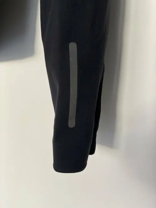 Testée sur des matinées fraîches et humides en dessous de 10°C, la veste SL Rain Logo s’est montrée confortable et respirante, même au cours d’efforts soutenus. Nous ne constatons pas d’accumulation de chaleur désagréable, et elle coupe parfaitement du vent une fois en mouvement. Bien sûr, en cas d’arrêt prolongé, ce n’est pas à proprement parler une veste « chaude », et on finit par frissonner un peu si on ne fait pas monter un peu la température corporelle. Mais comme elle évite la transpiration et donc l’accumulation d’humidité au niveau du sous-vêtement, on retrouve très vite le bon équilibre.