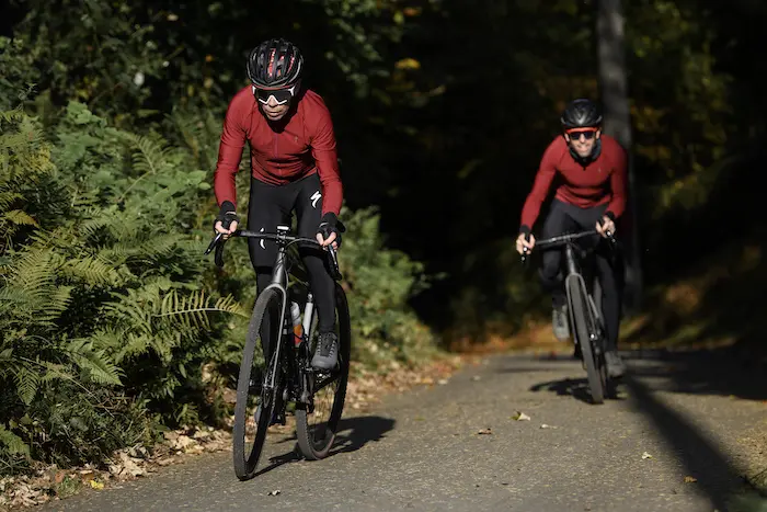 Tout ceci correspond à la direction prise par Specialized sur le Diverge, sorti juste avant la pandémie en 2020. Un vélo très polyvalent, à l’aise sur de longues distances mais aussi sur des terrains très cassants, proche de ceux pratiqués en VTT (en tout cas en dehors des terrains très engagés). Mais depuis, la marque américaine a aussi lancé l’Aethos, un vélo de route ultra léger, qui revient à l’essence même du plaisir pour beaucoup de pratiquants, avec un comportement aérien, facile et réactif. Avec le nouveau Crux, Specialized a ainsi voulu réaliser une synthèse de ces univers à la fois très proches et très différents. Pour un vélo qui réunit, sur le papier, le meilleur des trois approches, et qui est aujourd’hui utilisé par des coureurs de cyclo-cross de niveau mondial, mais qui se destine aussi à ceux qui veulent simplement se tirer la bourre entre copains le week-end sur les chemins, sans s’interdire quelques escapades sur le bitume.