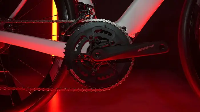 Certains aspects du moteur 2EXMAG sont essentiels pour que les BH Core Carbon offrent des sensations plus que jamais comparables à celles ressenties sur n’importe quel vélo de route classique. D’une part, l’utilisation d’un nouveau capteur de couple télémétrique permet d’obtenir un niveau d’assistance souple et progressif, sans précédent, capable d’atteindre 300 %, tout en procurant un pédalage naturel dans toute la plage de puissance du moteur. La capacité d’assistance, à des cadences allant jusqu’à 110 tr/min, sublime les sensations éprouvées sur la route en les agrémentant d’un caractère sportif. Le capteur de vitesse est désormais intégré pour obtenir des informations plus précises et sans interférences extérieures. À l’instar de la version précédente, aucun frottement supplémentaire n’est ressenti lorsque l’assistance moteur est à l’arrêt, ce qui permet de pédaler à des vitesses supérieures à 25 km/h sans aucune contrainte. De plus, ses dimensions compactes permettent d’obtenir un Q-factor particulièrement modéré, de seulement 163 mm, comparable à celui de tout autre vélo traditionnel.