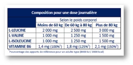Le ratio 2.1.1, 2 (Leucine), 1 (Valine), 1 (Isoleucine) est dit « naturel » car il correspond au ratio naturel de ces acides aminés branchés dans le muscle.