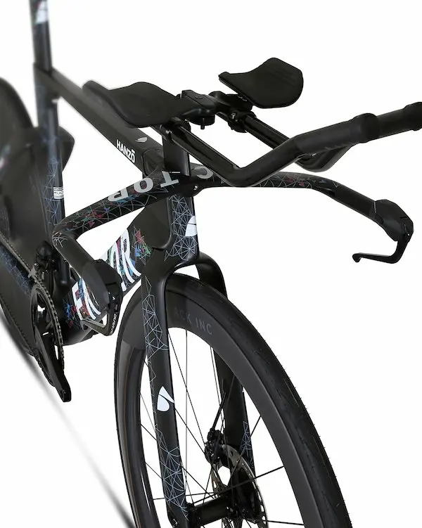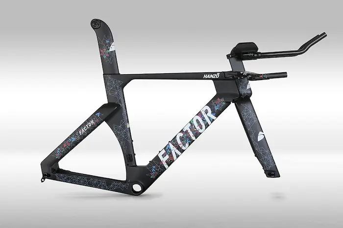 Sur l’Hanzō, Factor a pu approcher le développement aérodynamique d’une manière radicalement nouvelle, en poussant à la limite de ce que permet le règlement UCI pour la section des tubes. Factor affirme donc qu’avec l’Hanzō, elle a pu concevoir le cadre de contre-la-montre conforme au règlement UCI sans doute le plus rapide du monde. Rappelons d’ailleurs à ce sujet que tous les vélos de triathlon ne sont pas tous conformes pour les épreuves sur route.