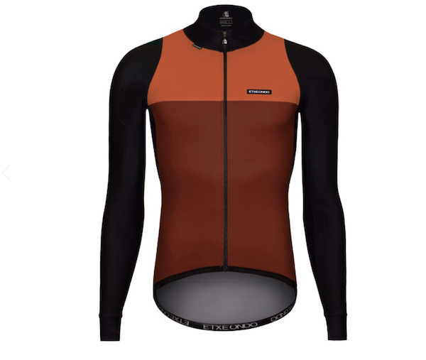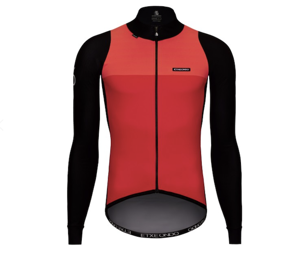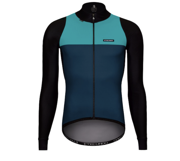 Etxeondo – prononcez Etsje-Ondo – est une marque basque qui existe depuis 1976 (d’où le nom de la veste 76) et qui fabrique depuis lors des vêtements cyclistes de haute qualité pour toutes les catégories de pratiquants. Associée depuis toujours à l’équipe locale Euskaltel – Euskadi, Etxeondo a une grande expérience de la compétition au plus haut niveau, et la marque a même fourni d’autres équipes de haut niveau comme le Team Sunweb par exemple. Grâce à ce savoir-faire, Etxeondo se targue de proposer une gamme de vêtements confortables, bien ajustés et bien finis, et surtout bien adaptés aux conditions de pratique, comme c’est le cas ici avec la veste 76.
