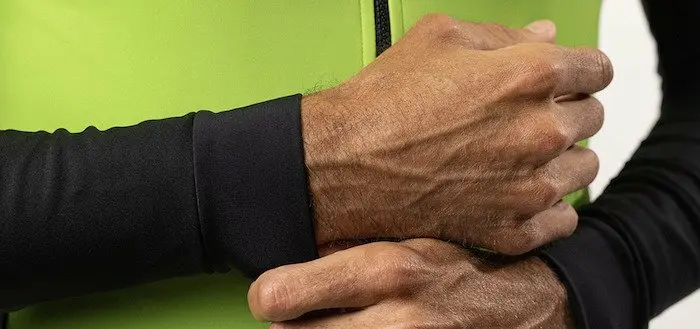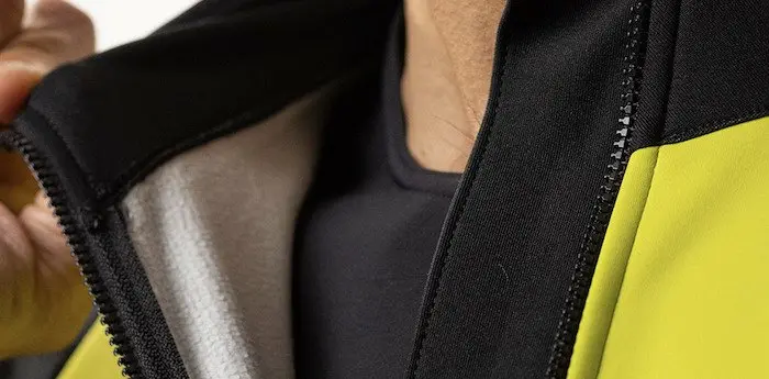 Celle-ci se veut la veste indispensable à disposer pour l’entrainement hivernal car elle couvre la grande majorité des conditions que l’on rencontre sous nos latitudes en automne et en hiver, c’est-à-dire avec des températures de 0 à 12-13°C, du vent frais et de l’humidité. Grâce à la protection qu’elle procure et à sa légèreté, elle est conçue pour ne pas entraver les mouvements, de manière à favoriser les entrainements soutenus. La partie avant, les manches et le dos utilisent un tissu Gore-Tex Infinium Windstopper, comme certaines autres vestes très haut de gamme de la concurrence. Ce tissu offre une résistance totale au vent tout en étant élastique pour assurer une coupe près du corps, et il maintient stable la température corporelle. Il évacue l’excès de chaleur vers l’extérieur et assure ainsi une très bonne respirabilité. La couche extérieure du tissu quant à elle bénéficie d’un traitement hydrofuge qui protège des averses légères et qui n’altère pas les qualités du Gore-Tex Infinium Windstopper.