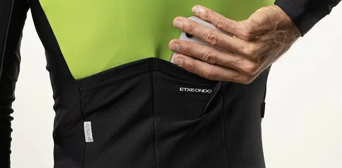 La première impression que laisse la tenue Etxeondo est celle de la qualité, avec de jolies finitions et une coupe qui épouse parfaitement les courbes du corps. Le collant est très agréable, et l’insert colle parfaitement à l’anatomie. La veste semble un peu plus « raide » que la concurrence, du moins à l’enfilage, du fait de son épaisseur supérieure à celle d’autres produits qui utilisent le même tissu. Elle est aussi très ajustée, comme du Castelli ou du Sportful. C’est à savoir au moment du choix de la taille. Les poches à l’arrière ne sont pas très aisées d’accès, du moins en roulant, car elles sont un peu hautes. En revanche, elles maintiennent parfaitement le contenu (clés, téléphone, ravitaillement) sans créer de ballotement.