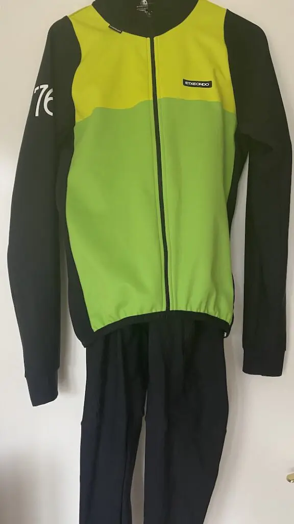 ll nous a fallu quelques semaines avant d’oser affronter un froid un peu plus piquant avec cette tenue, par habitude du reste de la garde-robe sûrement, et par crainte de frissonner toute la sortie. C’est donc avec un gilet coupe-vent dans la poche en « sécurité » que nous testé la tenue sous des températures inférieures à 5°C avec un vent de Nord-Est soutenu. Si les premiers hectomètres sont dans ce cas légèrement désagréables surtout au niveau des bras, nous sommes très vite rassurés quant aux capacités d’isolation de la veste 76. Le vent ne se ressent absolument pas au niveau du torse, la doublure apporte la chaleur nécessaire et surtout, l’ajustement évite au vent de s’infiltrer. Un petit cache-cou supplémentaire apporte même la chaleur idéale pour rester à l’aise. Sous la veste, un sous-vêtement technique à manches longues suffit. Avec un vent un peu moins soutenu, la tenue est sûrement utilisable sous des températures proches de 0°C.