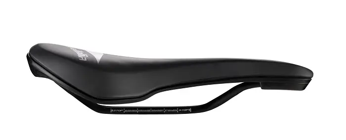Le rail est le protagoniste également du design du logo de la selle, juste pour indiquer à quel point l’importance de ce nouveau produit est contenue dans cette partie de la selle.