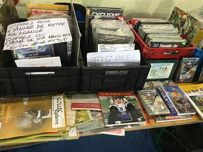 Et la Bourse de Baillet en France ne serait pas ce qu’elle est devenue sans le vrai esprit de brocante, celui qui permet de trouver par exemple des vélos datant des années 70, des cassettes avec 5 pignons et des livres ou revues à la gloire des anciens champions.