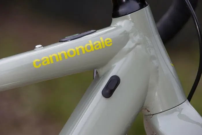 Pour le reste, le Topstone Neo SL 1 s’appuie sur un cadre en aluminium SmartForm C2, une technologie parfaitement maîtrisée par la marque depuis près de 30 ans. Cannondale a même été l’un des précurseurs de ce matériau sur la route, à la fin des années 90. Bien que visibles, les soudures sont régulières et le cadre respire la solidité, sans afficher un poids hors norme. La fourche est quant à elle toute en carbone. Au-delà du groupe GRX 600 avec une transmission 1×11, on apprécie le cintre avec un évasement vers le bas de 16° pour une meilleure stabilité de la machine dans les descentes et une selle Fizik Aliante Delta confortable, qui offrent une position d’ensemble très avenante et polyvalente, que ce soit pour la balade ou pour des parties de manivelles plus engagées.