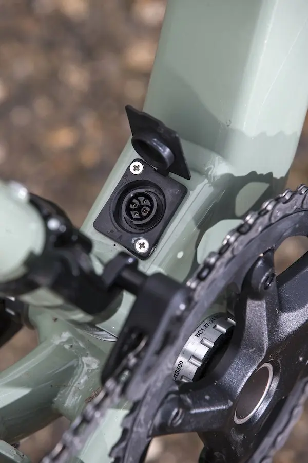 Cette assistance Mahle EbikeMotion X35+ de 250 W est déjà louée sur les vélos de route pour sa douceur de fonctionnement, son silence, et la transition quasi transparente ressentie lorsqu’elle cesse de fonctionner, notamment au-dessus de 25-26 km/h. Et le couple est réparti de telle manière qu’il fournit surtout une aide précieuse autour de 15 à 18 km/h environ, sauf pour le premier niveau d’assistance, qui, quant à lui, permet surtout de gommer le poids supplémentaire du vélo lors des démarrages et des relances à basse vitesse. Le seul défaut de ce système se situe au niveau du démontage de la roue arrière, avec deux gros boulons de chaque côté (clé de 16 ou clé Allen de 8), et qui impose de débrancher le câble d’alimentation situé sous la base arrière gauche. Attention à bien emporter l’outil nécessaire avant de partir en tout-terrain !