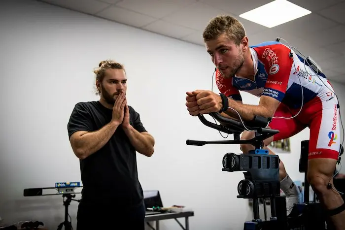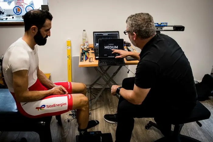 Lors de l’étude posturale, les coureurs se montrent ouverts pour la plupart aux propositions des opérateurs. Certains sont prêts à modifier radicalement de position, comme Alexis Vuillermoz, ou Edvald Boasson Haggen, qui avoue ne pas avoir changé de marque de chaussures depuis 10 ans. Mais la finesse de l’analyse de ses sensations étonne lorsqu’il teste sa nouvelle position. D’autres comme Fabien Doubey posent des questions, veulent tout savoir de l’intérêt de telle ou telle modification, comme celle qui consiste à raccourcir sa longueur de manivelles sur son vélo de contre-la-montre. Andrew McGregor, l’un des spécialistes de Retül lui explique dans son Français teinté d’accent canadien : « De cette manière, l’angle entre tes hanches et ton buste sera plus ouvert en position aérodynamique. Ce sera plus confortable pour toi pour exprimer toute ta puissance. »