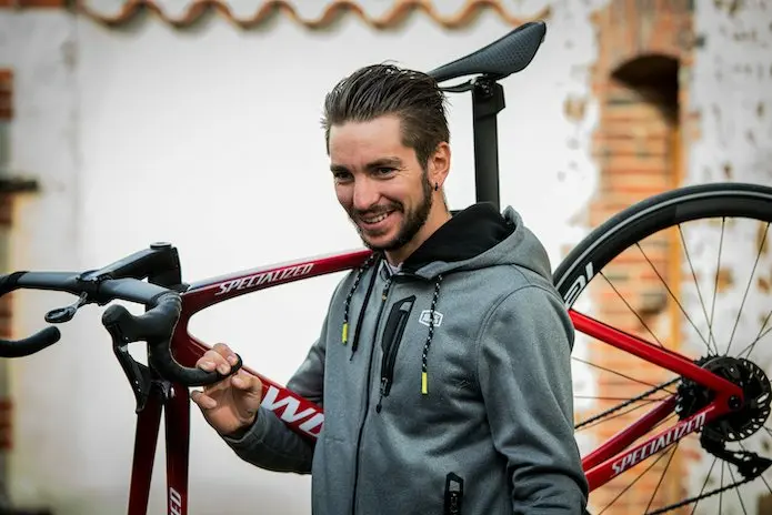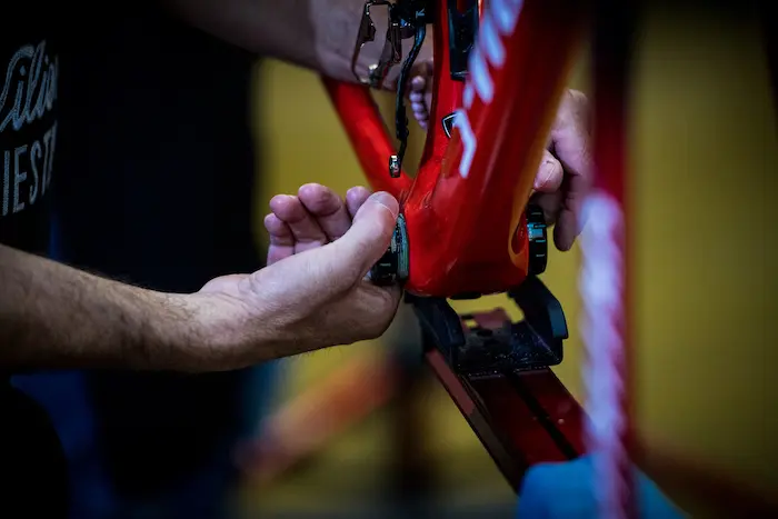 Une fois la position déterminée, les vélos retournent entre les mains des mécanos. Il reste une bonne heure de travail pour couper le pivot de fourche, et effectuer les derniers réglages. Les vélos sont précisément mesurés et les données sont archivées pour le montage des autres vélos en cours de saison. Les coureurs repartent chez eux avec leur vélo d’entrainement, avant même de s’envoler pour les vacances. Celles-ci seront studieuses pour Victor De La Parte, qui s’envole dès le lendemain pour un stage en altitude en Colombie « avec mon nouveau Tarmac, sourit-il. Il faudra juste faire attention aux photos diffusées sur les réseaux sociaux, car nous devons respecter les partenaires avec lesquels nous sommes sous contrat jusqu’à la fin de la saison actuelle. »