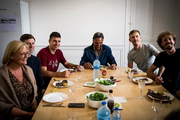 L’arrivée de Peter Sagan, avec trois équipiers, un directeur sportif, un mécanicien et un agent est un gros événement pour l’équipe TotalEnergies. Presque un choc des cultures. Mais les deux parties semblent séduites l’une par l’autre. Lorsque Peter Sagan et sa bande débarquent du mini-van qui vient de les récupérer à l’aéroport de Nantes en provenance directe de Nice, l’accueil est chaleureux. Sagan est souriant, bien que l’air un peu intimidé. Daniel Oss et Maciej Bodnar, en bons capitaines de route, ont l’air plus sûrs d’eux. Jean-René Bernaudeau confirme en petit comité le discours qu’il a dû tenir au triple champion du monde pour le convaincre de signer lorsqu’il leur fait visiter le manoir et le service course : « Peter, je souhaite que tu te sentes ici chez toi, que tu sois bien au sein de l’équipe et que tu t’amuses sur le vélo. Peu importe le nombre de courses que tu gagnes, j’aimerais que derrière chaque victoire il y ait une histoire. Mais aussi que vous tentiez des coups, que vous soyez de grands acteurs des Classiques. Je rêve d’une bordure avec Sagan, Oss, Bodnar, Turgis et Boasson Hagen qui fait exploser la course, précise-t-il avec enthousiasme. » Après avoir fini le tour du propriétaire, et avant de déguster un steak grillé dans petite salle à manger du manoir, Sagan confie à Bodnar qu’il est épaté par la structure mise en place par l’équipe. Tout semble se présenter sous les meilleurs auspices.