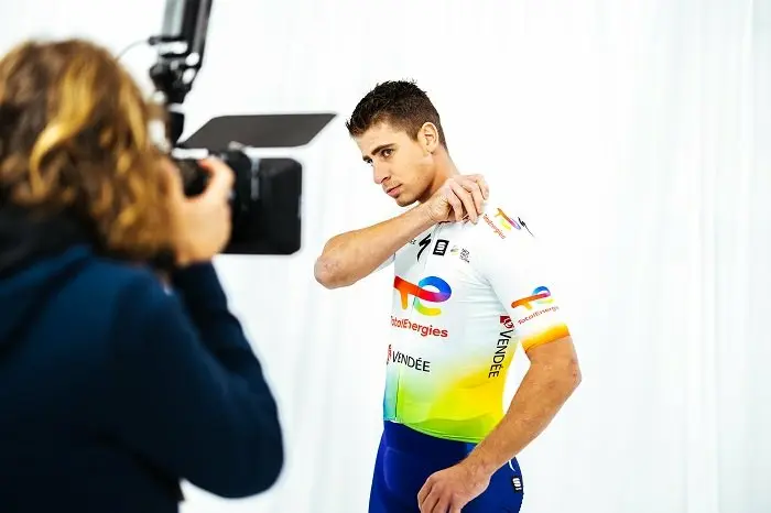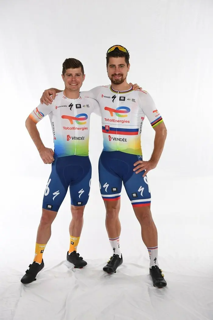 L’équipe TotalEnergies vient de présenter ses nouvelles tenues et s’est associée pour l’occasion avec la marque Sportful. TotalEnergies est l’une des équipes qui a beaucoup fait parler à l’intersaison avec la venue de Peter Sagan, le champion Slovaque que l’on ne présente plus. Fidèle à son habitude, il a amené avec lui sa garde rapprochée, avec ses collègues et amis que sont M. Bodnar et D. Oss, sans oublier son frère Juraj, tous en provenance de l’équipe Bora Hansgrohe. En plus de ces « stars », l’équipe enregistre la venue de deux coureurs issus de Vendée U, le club réserve de l’équipe professionnelle : A. Jousseaume et S. Dujardin.