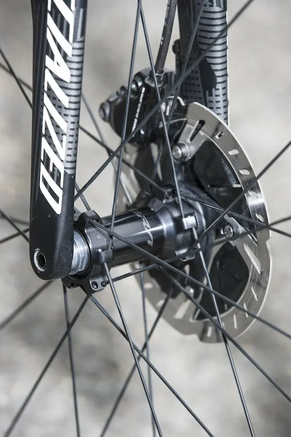 Sur chaque roue Ultegra, on trouve également 24 rayons en acier inoxydable avec un diamètre de 2,0 – 1,6 – 2,0 à l’avant et à l’arrière. Sur cette même roue arrière, le rayonnage est spécifique pour équilibrer la tension des rayons. Le serrage sur le cadre s’effectue bien entendu par un axe traversant de 12 mm, pour plus de rigidité. Quant au système de montage des disques, Shimano reste fidèle au Center Lock, comme sur les gammes de roues précédentes.