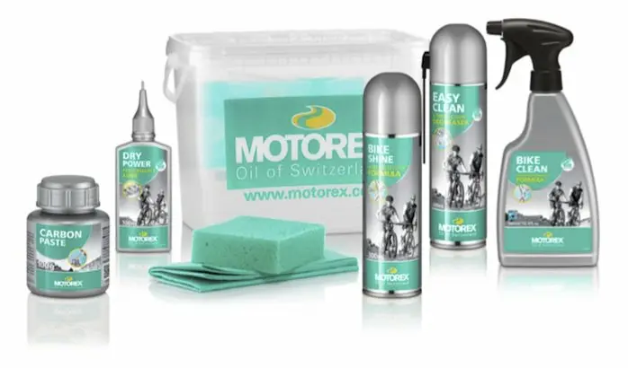Avec le kit Motorex Bike cleaning, le nettoyage est rapide, simple et efficace. Contient dans un seau, des sprays nettoyants et brillants, du lubrifiant, de la graisse pour composants carbone ainsi qu’une éponge et une serviette en microfibre. Certifié bio dégradable.