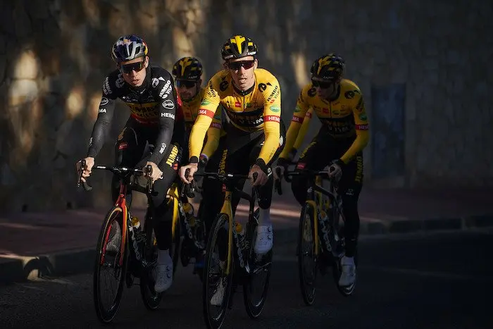 Pour la saison 2022, l’équipe Jumbo-Visma de Primoz Roglic, Wout Van Aert, Tom Dumoulin et Christophe Laporte renouvelle son partenariat avec la marque canadienne Cervélo. Les coureurs de l’équipe néerlandaise utiliseront les mêmes vélos que la saison précédente, pour l’instant encore montés avec des groupes Shimano Dura-Ace Di2 11 vitesses pour le début de saison, et avec la même décoration significative et la fameuse fourche jaune. Il s’agit des Cervélo S5, R5, P5 et Caledonia. Il en sera de même pour l’équipe féminine.