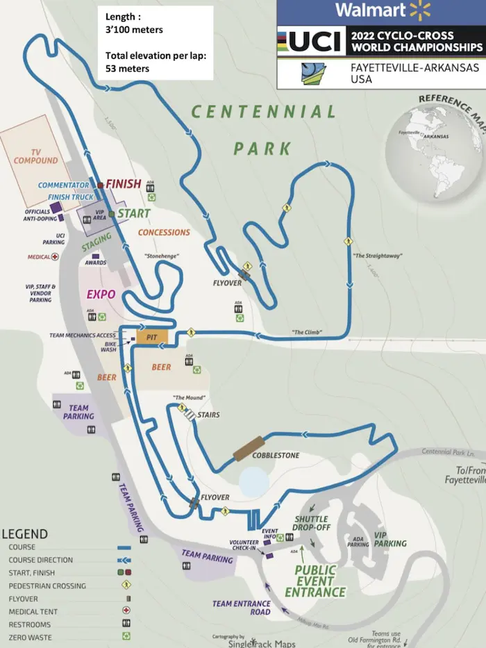 Les championnats du monde de cyclo-cross 2022 se déroulent les 29 et 30 janvier à Fayetteville aux Etats-Unis (Arkansas). Retrouvez le parcours, le programme et notre liste de favoris pour la course au maillot arc-en-ciel.