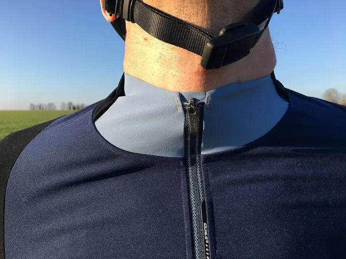 Le col a lui aussi fait l’objet d’une étude poussée : constitué de 2 panneaux différents, il a pour but d’empêcher toute entrée d’air tout en se montrant le plus confortable possible en position cycliste.