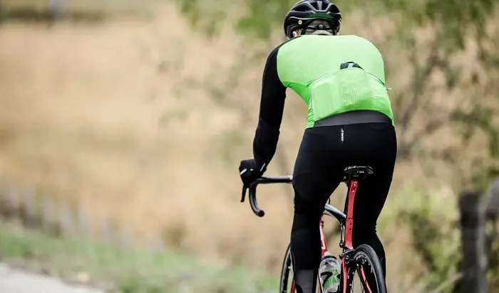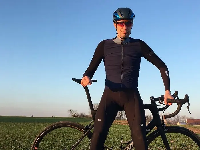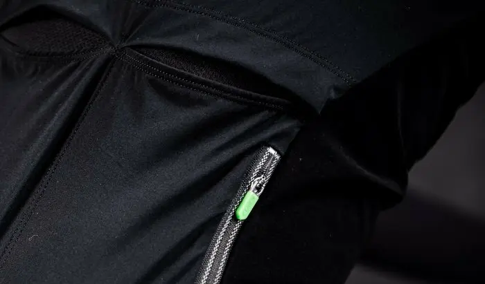 Alors que le discours de la marque qui indiquait un matériau tissé de façon très dense remplaçant une membrane tout en assurant la respirabilité d’un tissu sans membrane pouvait sembler idéal en théorie mais quelque peu utopique sur le terrain, la réalité donne raison aux concepteurs du produit. En effet, la partie avant bloque réellement les effets du vent (et de la vitesse de déplacement) sans entrainer de sudation notable, au point de devenir réellement bluffante ! La respirabilité est même améliorée par les poignets qui utilisent le tissu UFL1 Silver très fin tandis qu’à ce niveau, les manches sont bien longues, même lorsque le cycliste mesure 1m90. Au niveau du dos, la sensation de surchauffe est également absente avec l’emploi du même matériau.
