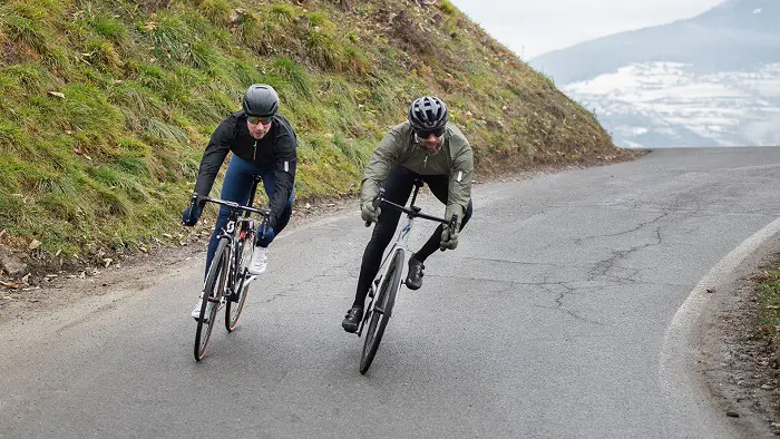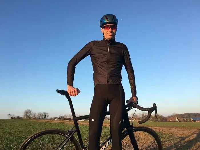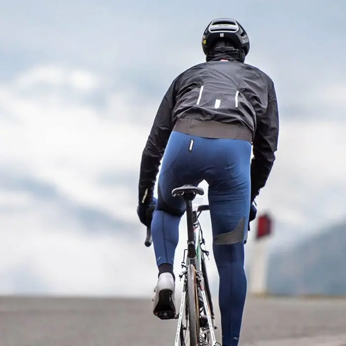 Cette polyvalence se poursuit même du fait de la respirabilité du produit. Le temps est loin des Gore Tex qui faisaient office de cocotte minute, dès que l’intensité de la sortie dépassait un certain niveau, et ce d’autant plus que le temps devenait sec. Ici, la respirabilité est très bonne et associée au fait que la veste est à la fois très légère et compacte, elle n’est pas « oubliée » dans l’armoire au moment de partir à l’entrainement. En cas d’averse imprévue, de descente un peu longue effectuée à l’ombre ou tout simplement pour se réchauffer entre deux passages plus intenses, il s’agit d’un outil idéal. Sauf en plein été et météo assurée, elle doit accompagner toutes les sorties du cycliste, au cas où. Elle trouve aussi son utilité lorsque la température de fin de sortie diminue et que le cycliste utilise à bon escient son retour au calme. Ce surcroit de protection est alors particulièrement appréciable.