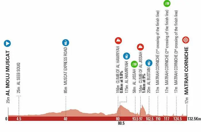 Mardi 15 février – Etape 6 : Al Mouj Muscat > Matrah Corniche (135,5 km)