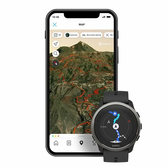 -Planification des itinéraires et visualisation des activités à postériori sur des cartes en 3D dans l’application Suunto.