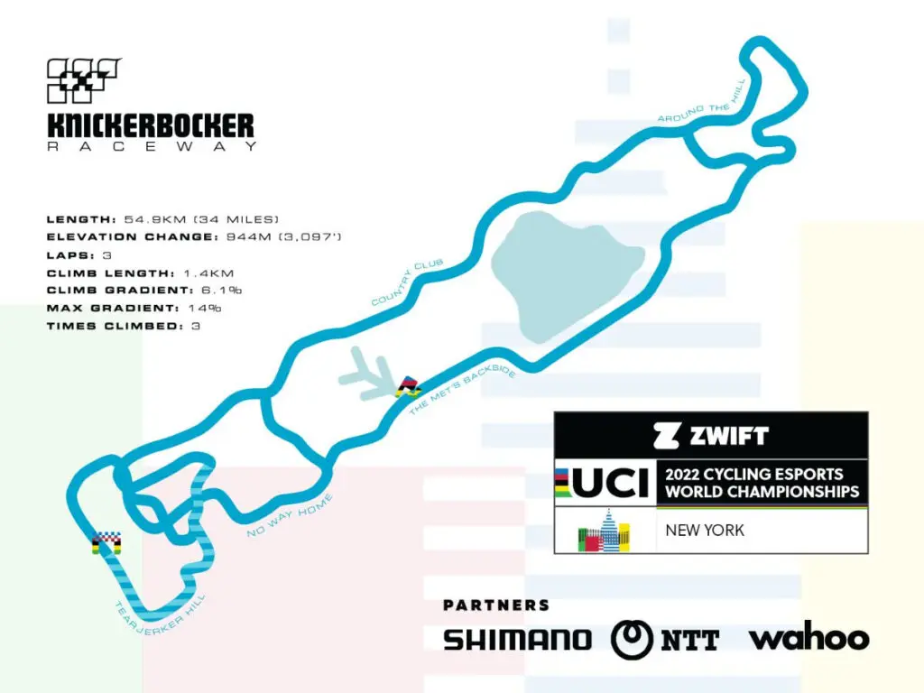 C’est dans le New York virtuel de Zwift que se déroulera cette seconde édition des Championnats du monde de cyclisme esport. Un circuit de 54,9 km et 944 m de dénivelé positif sur lequel les athlètes alterneront sections roulantes et pentes abruptes. Un parcours exigeant qui promet un beau spectacle.