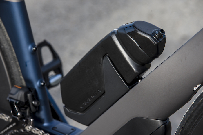 Selon Orbea, cette tool box offrirait un avantage aérodynamique de 3% sur l’ensemble du vélo. Ce n’est pas négligeable.