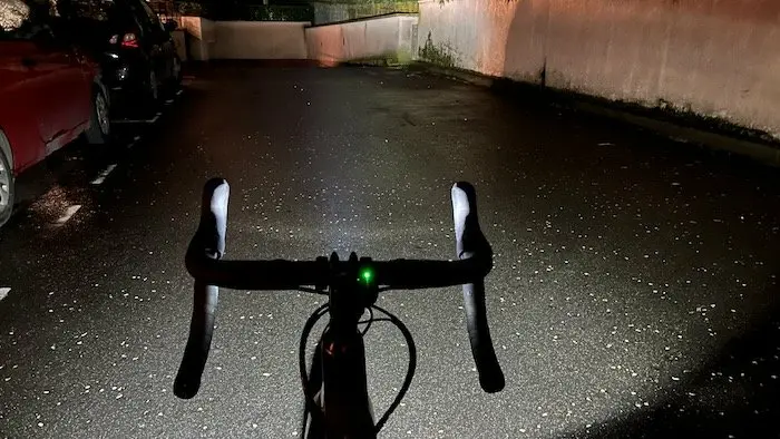 Sur le plan pratique, le placement des câbles au niveau du poste de pilotage peut s’avérer parfois un peu gênant en danseuse, surtout dans cette petite taille, avec une potence très courte. On note également une limitation du réglage du recul de la tige de selle, en raison de la fixation de la lumière arrière sur le chariot de selle. En fonction des paramètres choisis pour l’éclairage (une utilisation en partie de nuit pour le vélotaf en ce qui nous concerne), la batterie nécessite une recharge assez fréquente, après 2h30 d’utilisation environ. Cependant, il est intéressant de préciser que le phare avant se révèle assez puissant pour assurer une bonne sécurité au milieu de la circulation, et une très bonne vision dans les parties très sombres. Le radar apporte également beaucoup en termes de sécurité, et il permet de rester concentré(e) sur l’environnement. Il est difficile de s’en passer une fois qu’on y a goûté. Pour une utilisation quotidienne, le fait de n’avoir à recharger qu’une seule batterie pour tous les éléments est vraiment très pratique.